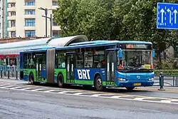 Lianyungang Bus Rapid Transit System (BRT) consists of BRT main lines B1, B3, loop lines H1 and H2 and supporting branch lines (B11, B12, B13, B15). The entire system is 136.9 kilometers long, including 34 kilometers of BRT Line 1, 18 kilometers of Ring Line 1, and 84.9 kilometers of supporting branch lines. It runs through the east, west, north, south, and south of Lianyungang City, and connects them into one.