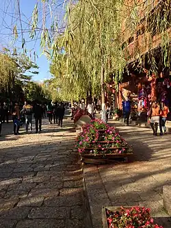 An earthquake in 1996 flattened large parts of the town, though quite a few of the traditional wooden buildings remained standing while far more of the Mao-era brick or concrete structures collapsed. Since then there has been extensive rebuilding, mainly in traditional styles. There have been some complaints that much of that work followed traditions of central China, rather than locally appropriate ones, but most visitors will just notice a lot of rather pretty old-looking buildings.