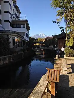 - 🌍 Black Dragon Pool (黑龙潭; Hēilóngtán), 1 Minzhu Road, Gucheng District (古城区民主路1号) (about 1 km from Square Street), ☏ +86 888 5188041. 07:00-19:00. Quite large place with some nice natural scenery together with traditional building styles. Don't forget to take pictures on the center bridge where the Yu Long Xue Shan (The Jade Dragon Snow Mountain) can be a perfect background. Popular with locals, whom you can find dancing or playing games such as mahjongg or Chinese chess. You can also hike up Elephant Hill if you're feeling energetic. Walk north along the canals from the waterwheels just to the north of the old town. It is about 10 minutes walk up-river. ¥50, free to seniors over 60.