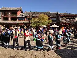 - 🌍 Old Town of Lijiang (丽江古城, 大研古城 Dayan Ancient Town), Gucheng District (古城区), ☏ +86 888 5111118. Walk around, watch people, shop, drink and eat. There is a bonfire at around 19:00 at the Si Fang Jie (四方街), the central plaza. Many local folks dance there, apparently entertain themselves. Tourists are welcomed to join. And if you get there early in the morning, you can avoid the crowds. Entry to the old town is free. The Old Town Maintenance Fee was abolished in 2017. However, some attractions within the old town still charge a fee.