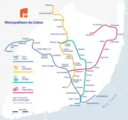 - Metro - Lisbon Airport metro station is the final destination of the red line Vermelha of the metro. The journey to the central Saldanha station takes about 16 minutes and less than 25 minutes are enough to get from the Airport to Baixa-Chiado with a change to the green Verde or blue Azul lines. A single journey can cost as little as €1.75 using the zapping functionality of the navegante card (see below).