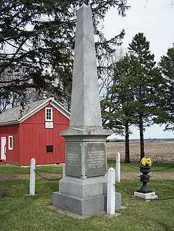 - Ness Monument - Buried in one grave under the Ness Monument are the remains of the first five victims of the U.S.-Dakota War. Their names are Robinson Jones, Viranus Webster, Howard Baker, Ann (Baker) Jones, and Clara D. Wilson. The violent act of four young Sioux who were starving because of broken treaties and thieving traders sparked a war that killed hundreds of people on both sides.
