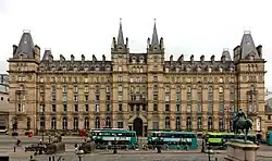 - 🌍 Marriott Liverpool City Centre, 1 Queen Square (in the heart of the city), ☏ +44 151 476-8000. Claims to be a 4-star property but is now a little tired. The Marriot is surrounded by the Queen's Square complex with its bars and restaurants.