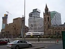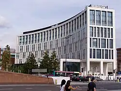- 🌍 Radisson Blu Hotel, Liverpool, 107 Old Hall St, ☏ +44 151 966-1500. On the old St. Paul's Eye Hospital site in the business district of the city. A small part of the original building has been retained and incorporated into the hotel.