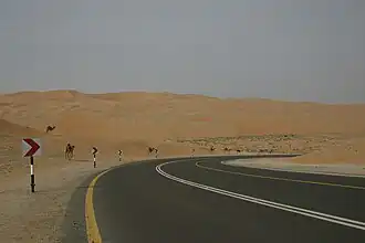 At the eastern end of the oasis region, a new road connects straight back to the E11 motorway close to Abu Dhabi. Though it is wide and well maintained, at only two lanes speed limits are set to 80 km/h, vs. 120 km/h on the main road.