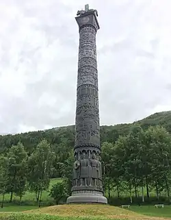 - 🌍 Sagasøylen. A 34-metre-high sculpture with reliefs in heroic “saga” style. The column depicts important moments in Norwegian history. Artist Wilhelm Rasmussen was working on the monument in the 1920s and it was planned to be erected in front of the parliament in Oslo. Rasmussen joined the Nazi party in the 1930s and further work on the monument was stopped. The column was completed in 1992 and erected at the Elveseter Hotel in Bøverdalen. The column is near the road and is a landmark in Bøverdalen.