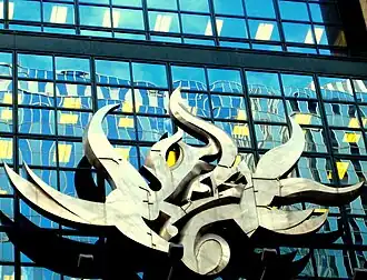 The Metcalfe Federal Building's lobby on the left at the intersection of Jackson and Clark contains another larger than life statue. Frank Stella has created a whole series of Moby Dick related abstract sculptures; this one is named after a specific chapter, The Town-Ho's Story. It's a terrific mess of 13,000 lbs. of steel and aluminum. The link to Melville's novel is not very clear, but the sculpture is impressive and purposefully abrasive.
