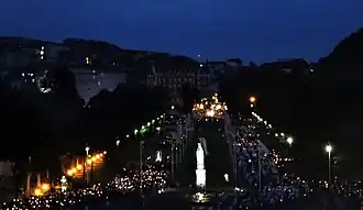 - Torchlight Procession, Starts from the courtyard. Between Easter and October: Daily 21:00. Light a candle and participate in a bright night full of prayers. Pilgrims will recite the Rosary mysteries depending on the day in various languages and singing Ave Maria that tells the apparition stories while marching behind a statue of Mary. You are also invited to say your own intentions in between prayers and get to know fellow pilgrims. The procession starts from the front of the Basilica.