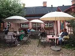 - 🌍 Tuhannen tuskan kahvila, Poikkikuja, ☏ +358 440-195- 971, liisantalo@sulo.fi. Tu–Su 10:00–18:00, M closed. The name means "The café of a thousand pains" but it's a cosy little café on the inner courtyard of a wooden house block typical of Loviisa. There is no bar to speak of, table service is available and you pay at the kitchen when you leave. The coffee is rather good and you get a generous portion of it. There are also small pastries available. €3.50 for coffee.