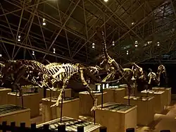 - 🌍 Lufeng Dinosaur Museum (禄丰恐龙博物馆), 95 Jinshan South Road, Jinshan Town (镇金山南路95号) (take bus no. 10 to the Electric Power Building (电力大厦), then walk about 200 meters north), ☏ +86 878 4130652. 08:00-12:00, 14:00-18:00, no entry in last 30 minutes,. Displays fossils collected from various sites in Lufeng, including a specimen of Lufengosaurus, a dinosaur species that was first discovered in Lufeng. Besides fossils, the museum also displays bronzeware, ceramics and other human artefacts. Free.