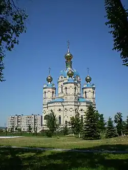 - 🌍 Sviato-Petropavlivs'kyi cathedral (Свято-Петропавлівський кафедральний собор), Kooperativnyi 2 ln. (Tram and bus stops "Rabkorovskaya" and ""Rodina" cinema" in KamBrod, then walk uphill from about between the two). One of the oldest temples in Luhansk diocese preserved during mass destruction. In 1905 the church was rebuilt, this time made of stone, with a bell tower, which was seven bells. By 1930, there were 89 icons in the church, 50 of them were three-tier iconostasis.