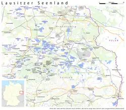 The Lusatian Lake District (German: Lausitzer Seenland, Lower Sorbian: Łužyska jazorina, Upper Sorbian: Łužiska jězorina) is a chain of artificial lakes which are the product of lignite mining in the German states of Brandenburg and Saxony