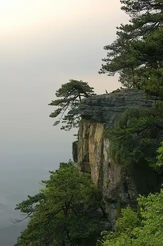 Lushan (庐山) is a mountain area with the touristy township Guling at an altitude of about 1000 metres and the surrounding mountains up to Dahanyang peak at about 1500 metres, in Jiangxi province. After a long Buddhist history, it was built up by British colonialists as a summer hill station, and still bears evidence of their architecture (both real and obviously contrived). It still makes for a refreshing escape from the summer heat, and offers many scenic hiking opportunities and some historic buildings, particularly of interest for fans of Communist Party history. It is very popular with the better heeled Chinese tourist, but well off the beaten path for independent foreign travellers and accordingly you should expect some communication difficulties. It is hoped it was enjoyed by Chairman Mao, as his visage in cane chair features in front of the many picturesque spots, with more than a little assistance from Photoshop. This mountain area is listed as a UNESCO World Heritage Site and UNESCO Global Geopark.