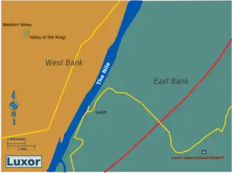 | West Bank The major ruins including Valley of the Kings, the Valley of the Queens and other important sites; the Western Valley ruins, and a few hotels. |