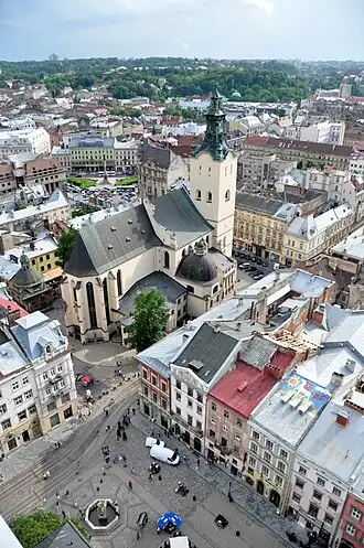 - 🌍 Armenian Roman-Catholic Church (Церква Святого Хреста), Zamarstynivska str., 9 (NW). A half-round apse temple built in the 1630s. Gothic architecture.