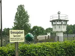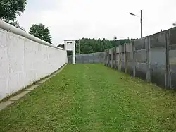 - 🌍 German-German Museum Mödlareuth (Deutsch-Deutsches Museum Mödlareuth), Mödlareuth 13, 95183 Töpen, ☏ +49 9295 1334. A museum in the village recalls the border and the division of Germany. Preserved border installations (700 metres of the original wall with two observation towers, border columns and warning signs, floodlights and other relics) lie along a 4-km (2.5-mile) instructional path.