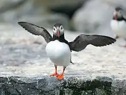 The island is a Canadian Wildlife Service sanctuary and nesting ground for thousands of pairs of Atlantic puffins, a thousand pair of razorbill auk, and hundreds of common murres, as well as a few common and Arctic terns. There are very limited facilities to bring passengers ashore from boats; typically a tour operator will transfer at most 15 passengers at a time onto small craft for landing.