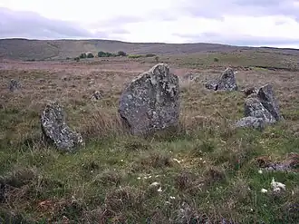 - Ballybriest on the west flank of Slieve Gallion is a dual court tomb: these were constructed around 3500 BC and used for later burials to 2000 BC. The east half of the tomb has lost most of its stone. It stands by the lane above Lough Fea, off B162 from Cookstown. 2 km northeast on the hillside is Corick stone circle, indistinct amidst the soggy heather.
