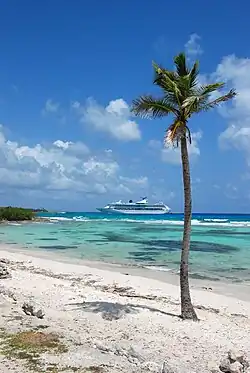 Mahahual used to be a quiet and friendly small fishing town off the beaten track. However a large cruise ship docking jetty dubbed "Puerto Costa Maya" has been constructed just up the beach. Every day a couple of cruise ships dock and the occupants are disgorged onto the town to drink, shop, swim and ride jet skis and quad bikes. However the further south away from the cruise ship dock you go the quieter the town becomes, so it's still possible to have a quiet time of it, especially at some of the hotels south of town.