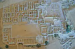 The palace of Malia, dating from the Middle Bronze Age, was destroyed by an earthquake during the Late Bronze Age, Knossos and other sites were also destroyed at that time. The palace was later rebuilt toward the end of the Late Bronze Age. Most of the ruins visible today date from this second period of construction. The palace features a giant central courtyard, 48 m x 23 m in size. On the south side are two sets of steps leading upwards and a maze of tiny rooms. Also here is a strange carved stone called a kernos stone, which looks like a millstone with a cup attached to the side of it. On the north side of the courtyard were storage rooms with giant earthenware pithos jars, up to two metres tall. These were used for holding grain, olive oil and other liquids; the floor of these rooms has a complex drainage system for carrying away spilled liquids.