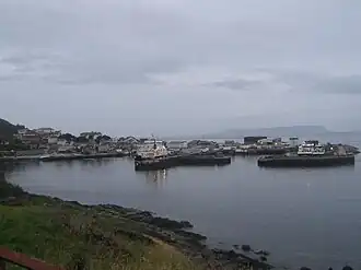 Mallaig (pronounced MEL-ig) is a ferry port and fishing village on the west coast of The Great Glen and Strathspey region of the Scottish Highlands, with a population of 660 in 2020. The name is Norse, Mel vik, sand-dune bay.