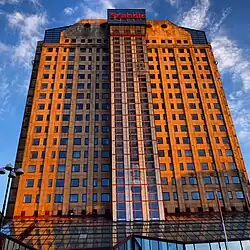- 🌍 Nordic Choice Quality Hotel View, Hyllie Stationstorg 29, ☏ +46 40 37 41 00. One of Malmö's newest hotels, the 65-m-tall tower is right in front of the Malmö Arena in the middle of Hyllie. The tower offers views over Malmö and the Öresund Strait and was built in 2016. A taller 110-m tower is under construction right next to it as of 2018. Wi-Fi and breakfast included. From 980 kr.