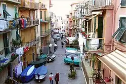 When you arrive at the train station, you may need to go underground to reach the main platform. Head down the tunnel toward the city. During World War 2, the residents spent the nights here for protection. There is a wonderful art gallery with oil paintings and watercolors of the cinque terre towns. Turn right and up the hill -- this road used to be a stream, with bridges crossing, similar to Venice. The stream was paved over and you can still hear the running water. About halfway up, there is still an old water wheel. At the top is the church of S.Lorenzo.
