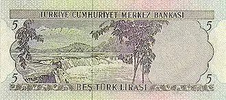 - 🌍 (Manavgat Şelalesi), Istiklal Cd 35, Sarılar (6 km north of city centre), ☏ +90 551 167 5090. Daily 08:00-22:00. The falls are only 3 m high, but the river is broad and has a strong flow, so there's a thundering white curtain. You view them from the west bank, preferably morning as the area gets congested later with visitors craning for photos. Or come at night when the falls are floodlit. Lots of cafes, kitsch and tourist traps nearby. The falls were depicted on the reverse of an old 5 TL banknote, withdrawn in 1983. Adult 20 TL, child 10 TL.