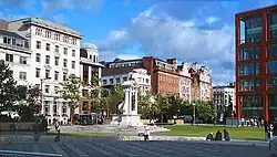 | Spinningfields-Albert Square The area in central Manchester north of Castlefield and east of Quay St and Peter St includes the locales of Deansgate, Albert Square, and the business district of Spinningfields. |