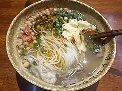 - 🌍 芒市米线馆 (Mangshi Rice Noodle House), No. 12 Mingxin Road, ☏ +86 692 8703456. 09:00 - 21:00. Mangshi Rice Noodle House is famous for its delicious local rice noodles. The restaurant serves a variety of Mixian (rice noodles) dishes, including spicy and sour versions with different meats, vegetables, and a rich broth. It's a must-visit for noodle lovers in the city. ¥25/person.