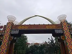 - 🌍 Mangshi National Cultural Palace (国立文化宫), South Section of Youth Road (on the south section of Youth Road in Mangshi, with the main entrance designed in a triangular spire shape and a gourd-shaped arch, reflecting the Dai palace architectural style with vibrant colors and strong ethnic features), ☏ +86 692 3067555. 09:00-17:00. Mangshi National Cultural Palace covers 154 acres and was completed in 1988. It features a triangular spire entrance with a gourd-shaped arch and Dai-style palace architecture. Inside, there are exhibition halls displaying the traditional culture and arts of the Dai and Jingpo ethnic groups. The palace also hosts various cultural events and festivals, making it an excellent place to learn about local ethnic culture. It is open daily from 09:00 to 17:00, with free admission. Free.