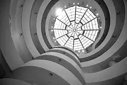 Interior of the Guggenheim Museum - 🌍 Solomon R. Guggenheim Museum, 1071 5th Avenue (at 89th Street; Subway: 4 5 6 to 86th Street; Bus: M1, M2, M3, and M4 to Madison Avenue & East 89th Street (northbound) or 5th Avenue & East 90th Street (southbound) or M86 Select Bus Service to East 86th Street & 5th Avenue), ☏ +1-212-423-3500. 10:30AM-5:30PM. Probably the most famous of the Guggenheim foundations (others found in Bilbao and Venice), which hold avant-garde modern art by artists such as Kandinsky and Mondrian, the New York branch is housed in a unique and famous building designed by Frank Lloyd Wright and rendered in a rounded, organic form and completed in 1959. Be sure to take the elevator to the top floor, then follow the spiral viewing floors downwards to the street level. One of eight buildings by Wright to be listed as a world heritage site. $30/adult, $19/senior/student/disability, free for children under 12. Pay what you wish M/Sa 4-5:30PM.