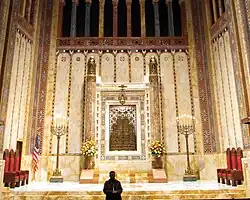 - 🌍 Temple Emanu-El of New York, 1 East 65th Street (at 5th Avenue; Subway: F Q to Lexington Avenue–63rd Street or 6 to 68th Street–Hunter College; Bus: M1, M2, M3, and M4 to Madison Avenue & East 66th Street (northbound) or 5th Avenue & East 65th street (southbound) or M66 and M72 to East 65th Street & 5th Avenue)), ☏ +1-212-744-1400. Visitors are welcome Su-Th 10AM-4:30PM — except in the occurrence of a holiday or funeral service (call ahead to make sure the temple is open when you plan on going). You can also visit the temple to pray, such as on the Sabbath, if you so choose. This temple traces its lineage to the founding of the Reform Jewish community in New York in 1845, although this building itself dates from 1929. The building is an important and impressive landmark, and the congregation numbers among its members many of the pillars of the Jewish community in New York, including major philanthropists, businesspeople, and politicians. If you don't arrange to visit the interior, it's worth just walking past the building and looking at the decorations on its exterior. No charge for self-guided or guided visits (for groups of 10 or more) is mentioned on the website.