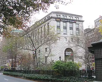 - π Central Savings Bank building, 2112 Broadway (Occupies the block between 73rd and 74th Sts. between Broadway and Amsterdam). This building, which is occupied by Apple Bank for Savings, is a notable Italianate palazzo whose stone facades and metal-barred windows are meant to ooze a sense of security.