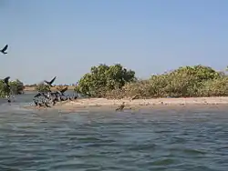 To reach the embarkation village of Ndangane Sambou from Dakar, take the highway N1 south through Mbour and then continue south on the Joal route. After Joal the road changes from asphalt to a red bush-road; the quality of the road after Joal is poor and can become impassable during the rainy season without a 4x4. Follow the signs in Samba Dia directing you to Fimela; continue past Ndangane Campement to the "docks" at Ndangane Sambou.