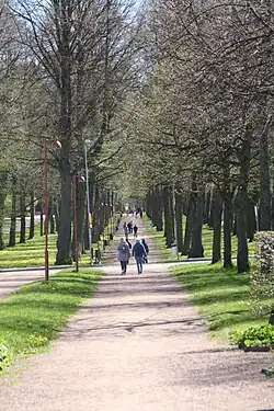 Mariehamn grew up round the farming village of Övernäs, situated on a peninsula. The harbour's built-in sheltered bays came to be of great importance. The streets of Mariehamn are wide and straight. Housing sites were large from the beginning, but today they have been divided to provide space for several houses. A distinctive feature is the Esplanade, an avenue of lime (linden) trees stretching from west to east, from harbour to harbour.