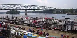 - 🌍 Ohio River Sternwheel Festival, Ohio Riverfront Park. Ohio River Levee on the corner of Front and Greene St, downtown, always the weekend after Labor Day. Sa 7:30PM/10PM. "Harry J. Robinson" Fireworks. They anchor barges in the middle of the Ohio River and produce one of Ohio's outstanding fireworks displays, from the barges, reflected in the water, with illumination of the bridges, by fireworks. Quite a display. Excellent event!