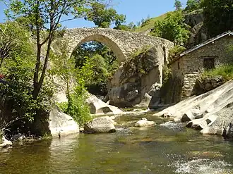 - 🌍 Stone Bridge of Zovikj (Камен мост (Зовиќ)), village of Zovikj. A single-arch stone bridge crosses the Gradeška River, forming quite a picturesque scene. A bridge has existed at this spot for centuries, but it was wooden until the 1950s, when the it collapsed as a herd of oxen were crossing. The villagers then decided to reconstruct it in stone. Saint George is painted on its underside. It has been featured in Macedonian films.