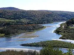 The Matapédia Valley (vallée de la Matapédia) is a region of the Gaspé Peninsula in Quebec. Sometimes called "La Vallée", it is the western part of the Gaspé and the only one not to have access to the sea. The forest, mainly made up of spruce and fir trees, covers a large part of the region. Salmon fishing is a popular pastime in the many rivers in the valley. The river is interrupted by two large glacial lakes: Lac Matapédia and Lac au Saumon.