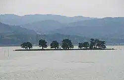 A special sunset viewing platform (Yuuhi Spot) which has been constructed along the lakeside is the best place to see the sun go down behind Yomegashima island.