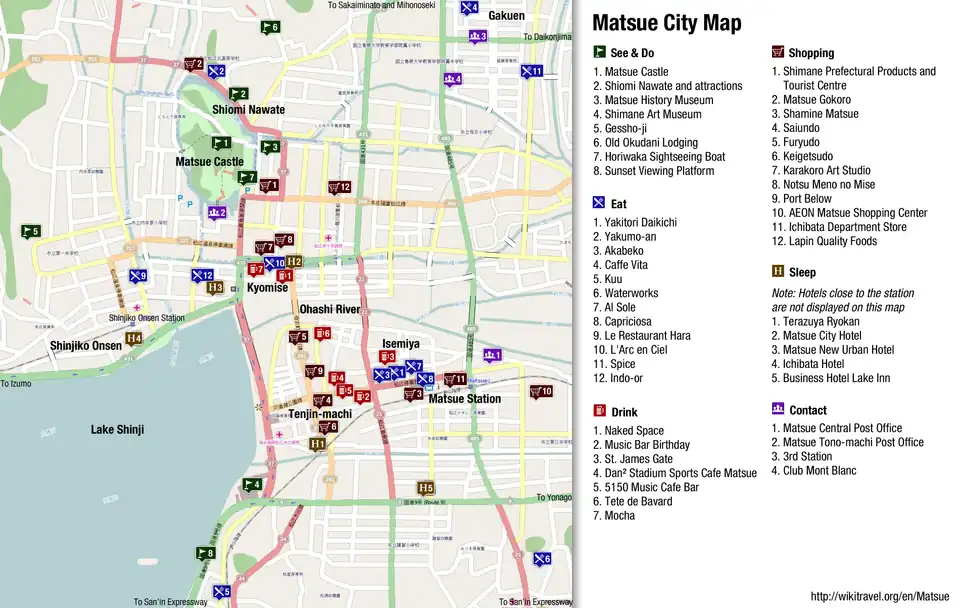 - Matsue Shinjiko Onsen Station (near Shinjiko Onsen Station), ☏ +81 852 21-2429.