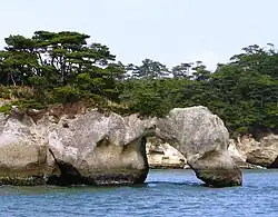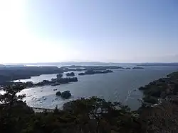 Matsushima (松島) is a small town in Miyagi prefecture, northeastern Japan. The town faces Matsushima Bay, famous for some 260 tiny islands (島 shima) covered in pines (松 matsu) — hence the name — and ranked as one of Japan's Three Great Views.