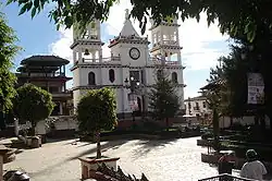 - 🌍 Parroquia San Cristobal (St Christopher Church), Gomez Farias 4, Centro. Strikingly unique church that looks historic but was actually built in the 20th century. It is known for its Chinese look and feel with large, wide bell towers and central clock tower with flared rooflines that resemble a pagoda.