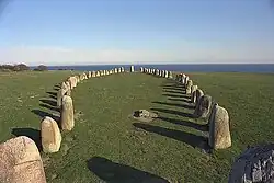 In Denmark, Sweden and Norway there are numerous megalithic tombs and stone circles, often in combination with rock carvings. In Sweden, the Ale's Stones are an impressive ship formation made of stones.