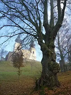 - 🌍 Maria Taferl Sanctuary (Wallfahrtskirche Maria Taferl / Pfarrkirche zur Schmerzhaften Muttergottes), Maria Taferl 1 (20km W of Melk on the N side of the Danube), ☏ +43 7413 278, info@basilika.at. This unusual site has both a pre-Christian sacrificial stone and a Catholic sanctuary. According to legend, a carved Pietá was placed at an oak tree in thanksgiving for a miraculous healing; eventually the site was associated with miraculous sightings of the Virgin Mary. The oak tree was burned in 1755, and the current building dates from the Baroque period. The Celtic sacrificial stone (Opferstein) is located in front of the church; the stone balustrade surrounding it dates from the 18th century.
