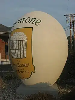 - World's biggest egg, Corner of Main and Morgan Streets. A 10-foot high concrete egg that pays tribute to Mentone's claim as the "Egg Basket of the Midwest". There was a time where the majority of all the eggs sold in the United States came from the Mentone area, and the market still has a substantial stake in the region. Every now and then, local alliances flare up due to Winlock, Washington, also having a giant egg. Free.