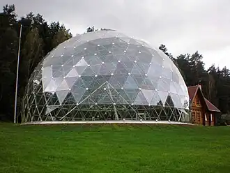 - 🌍 Healing Pyramid, ☏ +370 682 61617. Daily 09:00-20:00. Geodesic dome erected in 2002. The "pyramid" within is a triangular open frame: apparently this focuses subtle energies to help you regain long-term spiritual balance and physical health. If it doesn't, then you didn't approach in a sufficiently po-faced meditative manner, or stand barefoot in the prescribed spots.