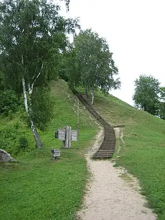- 🌍 Castle mound (off R133). 24 hr. A piliakalnis is a partly-artificial mound, originally with wooden palisades. This one was probably constructed in the 13th century: it was torched again and again but swiftly rebuilt. A few of these were converted to stone bastions but most, including Merkinė, were abandoned after peace came in the 15th century. Park on R133 and approach via the footbridge. Free.