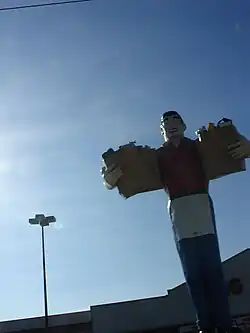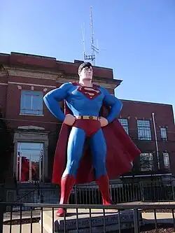 Metropolis is a small city in Southern Illinois probably named out of wishful thinking which hasn't really been borne out. The town's current claim to fame is as the host for a floating riverboat casino run by the Harrah's casino chain of Reno, Nevada. The town has also capitalized on its name by erecting what is referred to on road signs as a Giant Statue of Superman of DC Comics fame. In fact, though the statue is called giant it's less than half as tall as the statue of Big John the grocer, which is found in front of the Big John's supermarket on the way into town. Big John's also hosts a small gaming casino room.