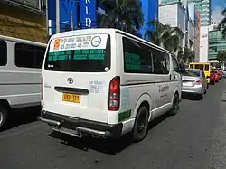 - Jeepney: Jeepneys provide services to Parañaque and Pasay. Jeepneys that serve Terminal 3 will have "NAIA Terminal 3" written on the side route panel. Jeepneys that serve Terminals 1 and 2 will have "MIA" written on the side route panel.
